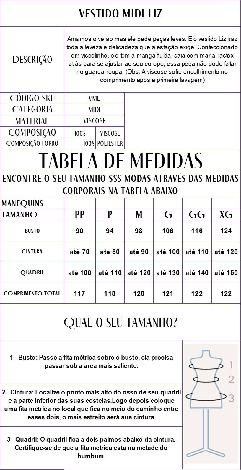 Não deixe de ter essa peça essencial no seu guarda-roupa! Ah, e lembre-se: a viscose pode sofrer encolhimento no comprimento após a primeira lavagem, então cuide bem do seu novo favorito!